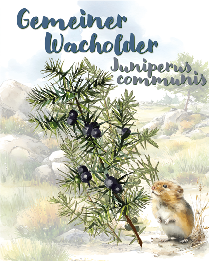 Doch der Gemeine Wacholder ist weit mehr als ein Symbolbaum – auch ökologisch spielt er eine wichtige Rolle. In seinem dichten Geäst nisten Vögel gerne. Zahlreiche Arten fressen die „Beeren“, darunter auch die Wacholderdrossel. Er ist Futterpflanze für Falterraupen von diversen Spinnern und Spannern. Auch einige Käfer sind auf die Pflanze spezialisiert. Aus wärmeren Gefilden breitet sich etwa der wunderschöne Wacholderprachtkäfer bei uns aus. Für sonnige Stein- oder Heidegärten, aber auch als säulenförmiger Solitär, macht sich die „Zypresse des Nordens“ also gut. Übrigens: Um Ihre Birnen müssen Sie sich keine Sorgen machen. Denn als Wirt für Birnengitterrost spielt der Gemeine Wacholder keine Rolle. Die Pilzkrankheit befällt vor allem asiatische Wacholder-Arten und -Zierformen.